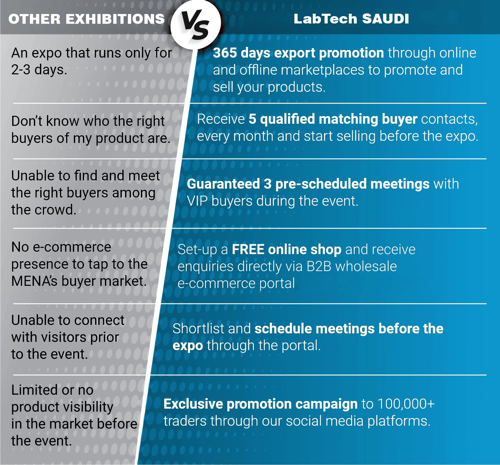 Saudi MedTech attracts pre-qualified healthcare buyers, including hospital executives, procurement leaders, government entities, distributors, and investors who are actively sourcing new technologies and solutions.